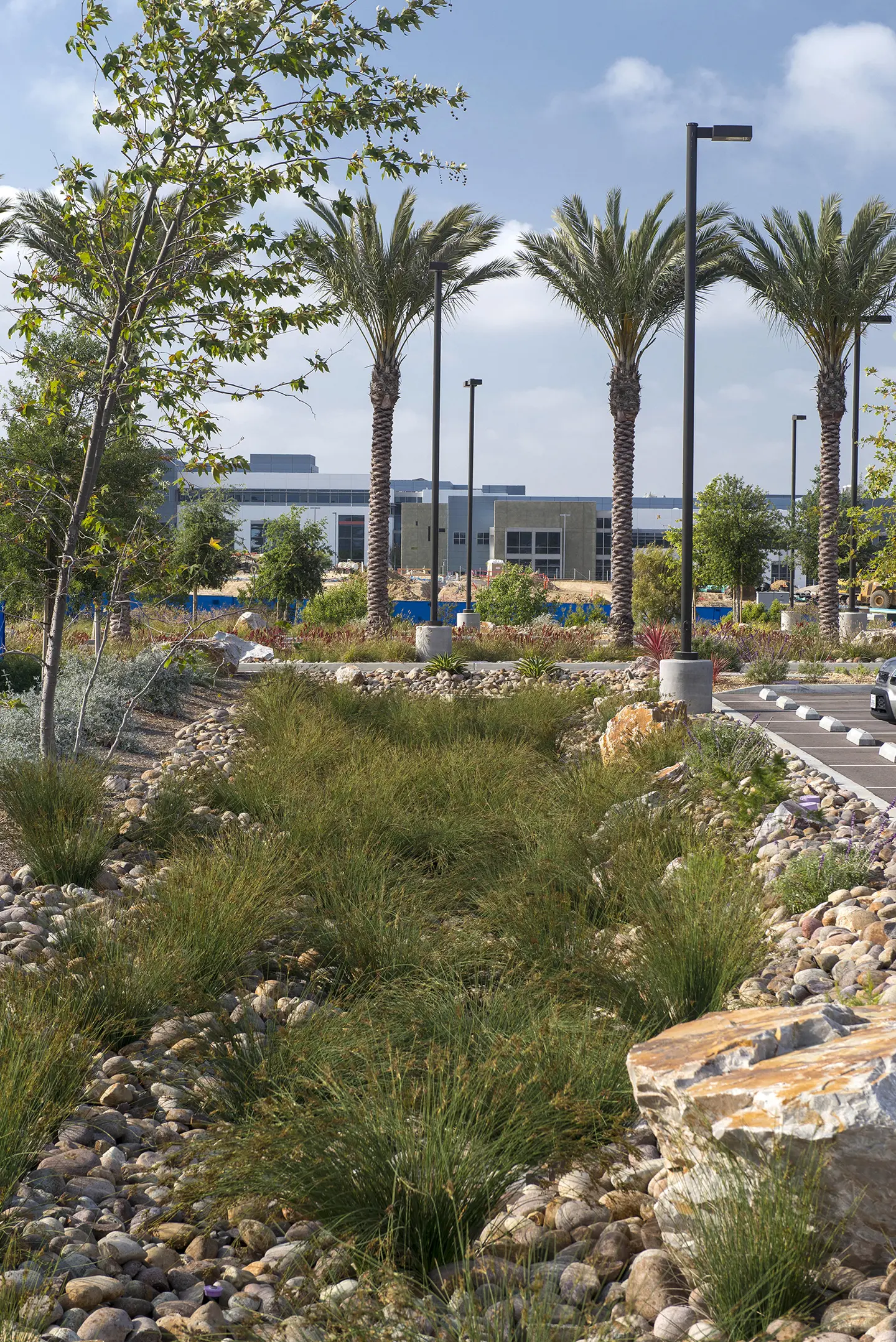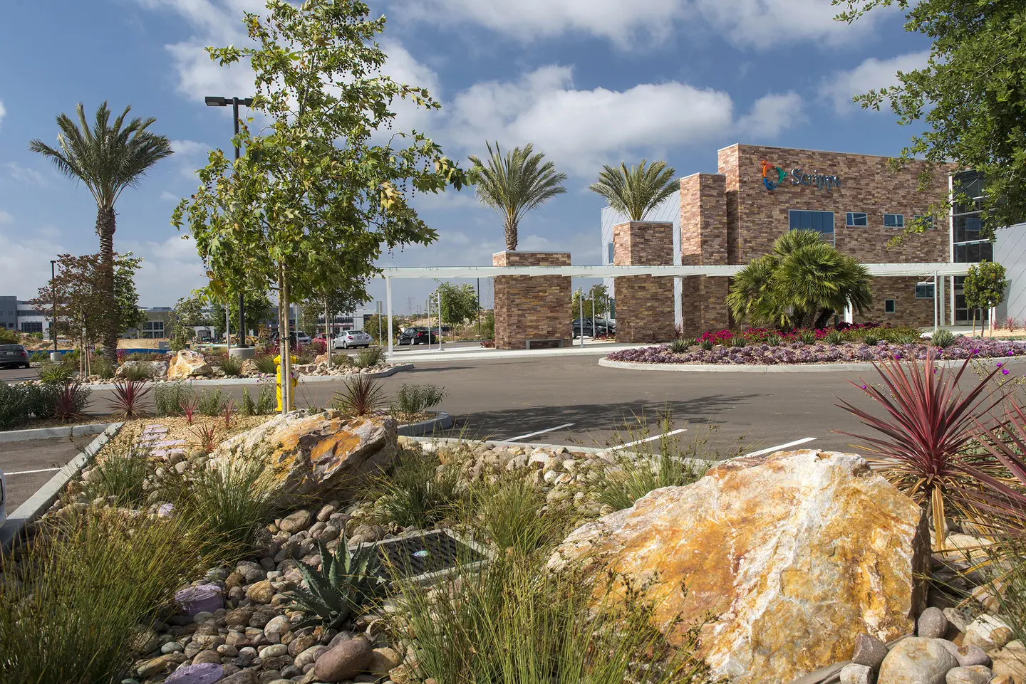 The state-of-the-art California Proton Center opened in February 2014, making it the nation’s fifteenth proton facility. Using accelerated particles, or protons, the California Proton Center is able to precisely target cancerous tumors with high dose radiation. Creating a restorative, welcoming environment for its patients is paramount. Thus, the 102,000 square foot facility features healing gardens and is surrounded by rows of drought tolerant plantings, providing a landscape that is both sustainable and soothing.
