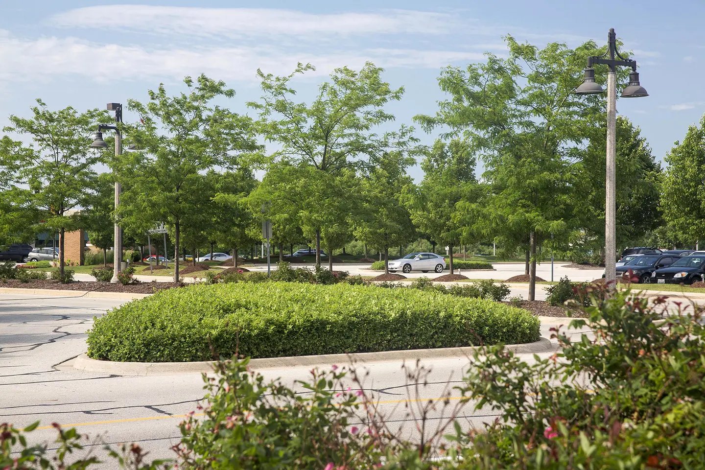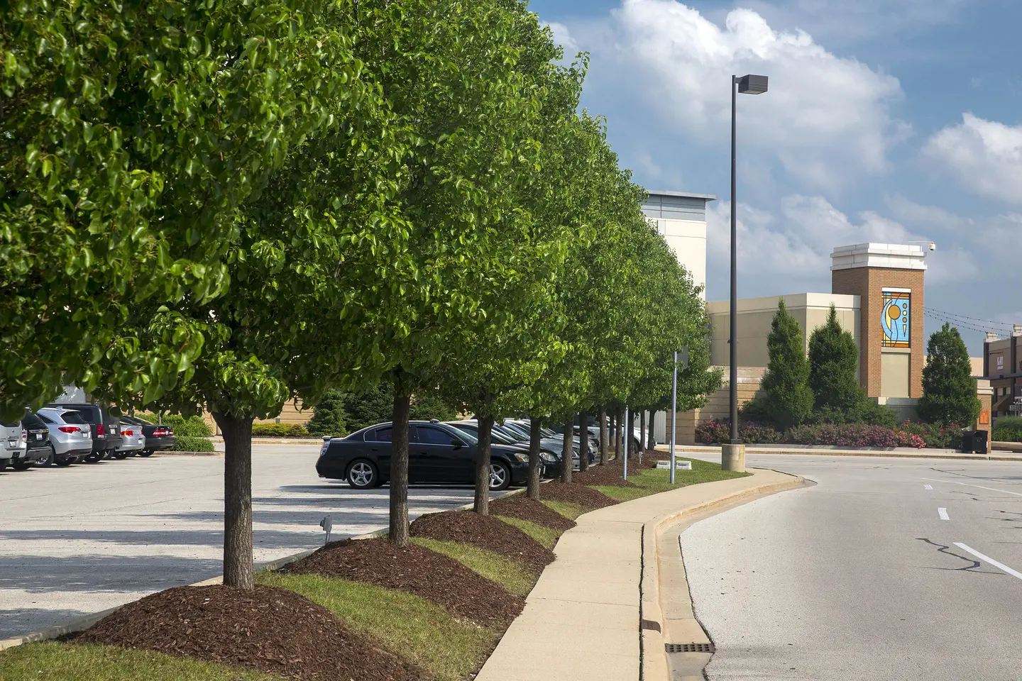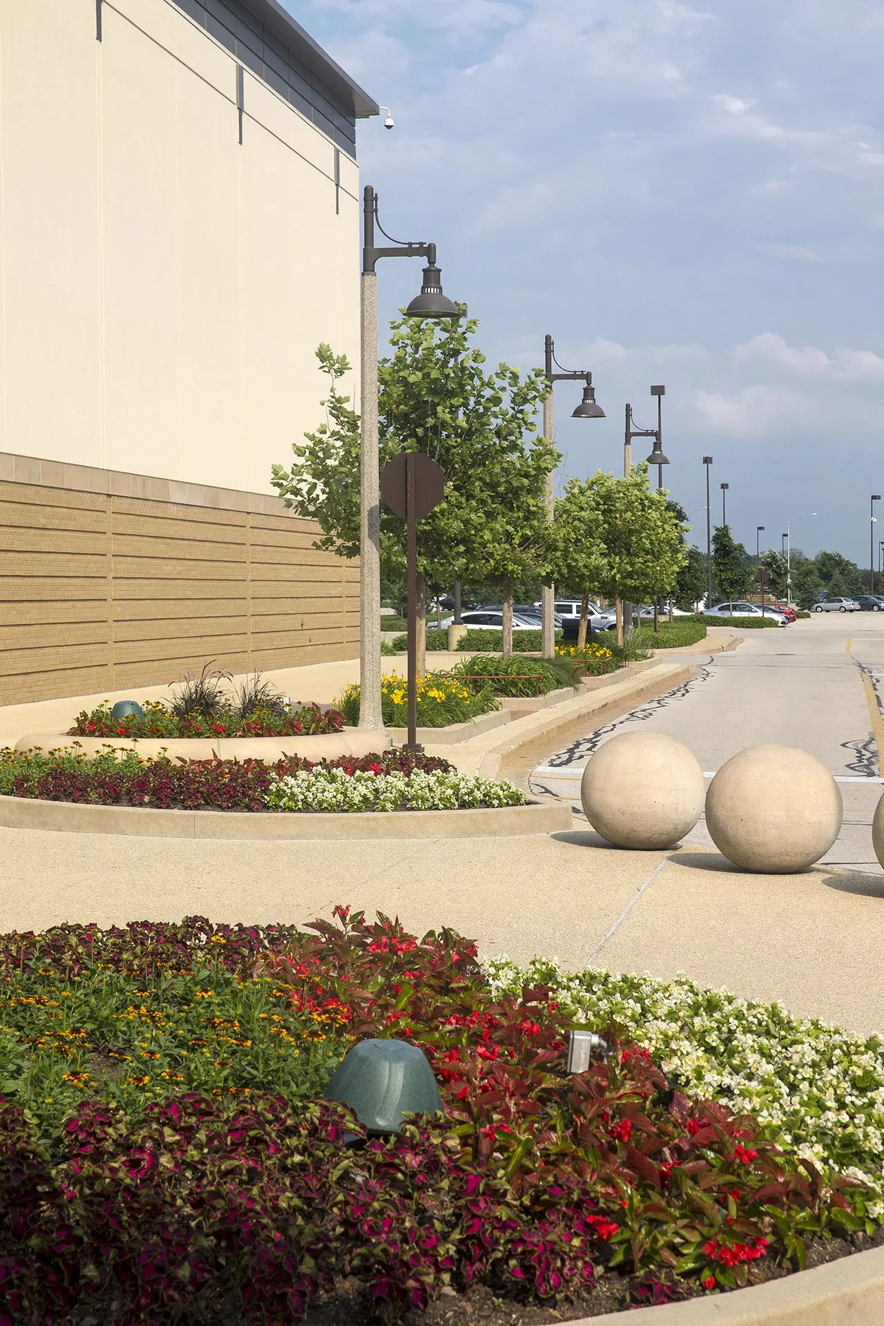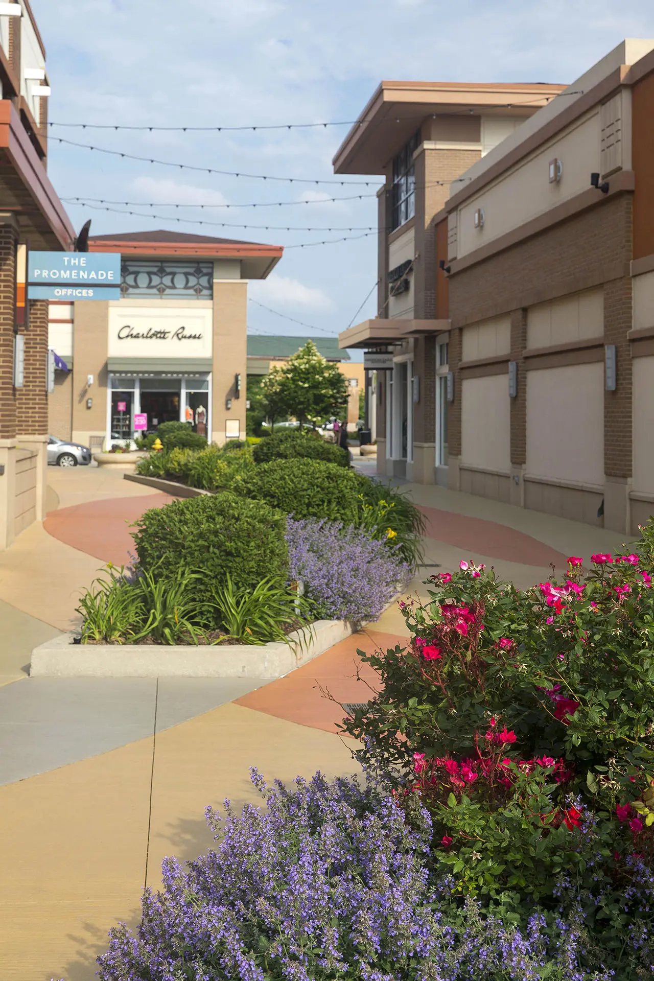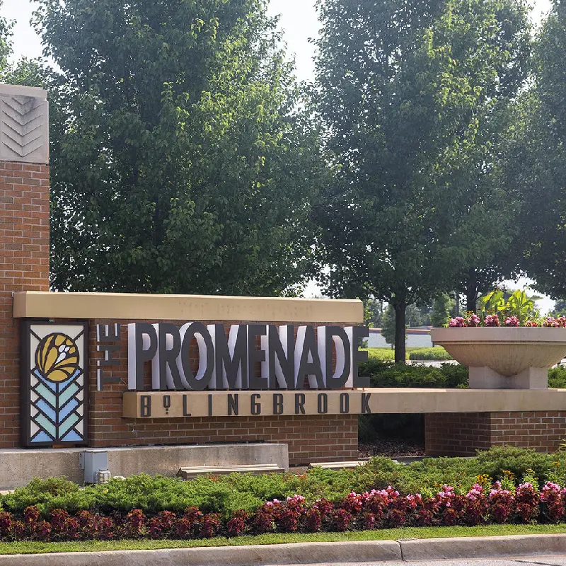 In the Chicago suburb of Bollingbrook is The Promenade, a 750,000 square foot open-air shopping center. With easy access, plus a wide variety of shops, restaurants, community events and workshops, the shopping center is a popular destination for many in the community. Attractive landscape adds to the welcoming ambiance, with oversized planters bursting with colorful blooms, neatly trimmed ornamentals lining pathways, and mature trees providing shade on warm days.