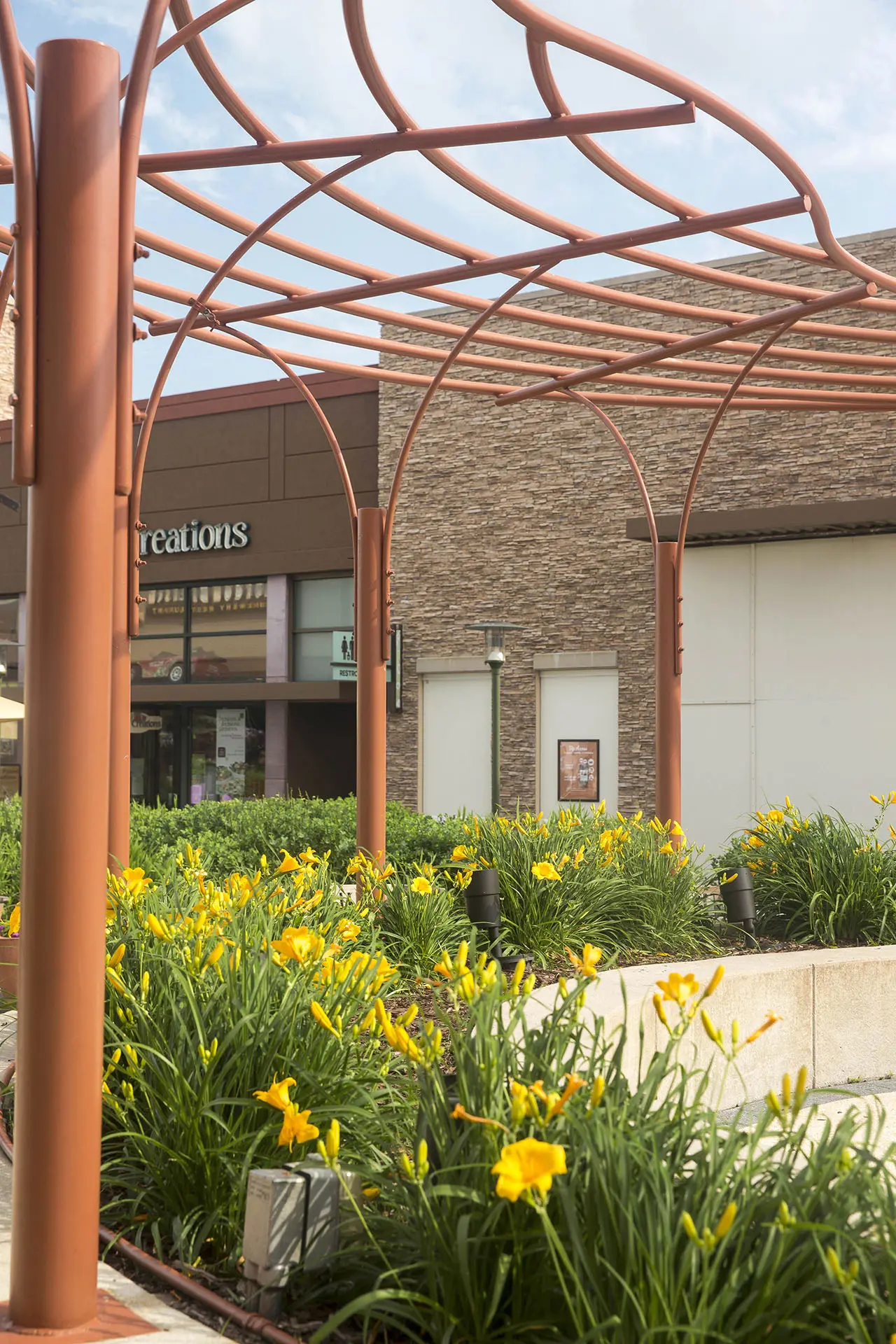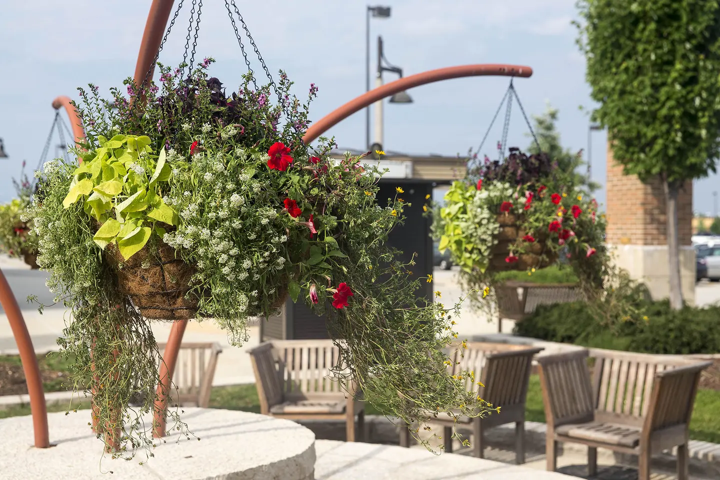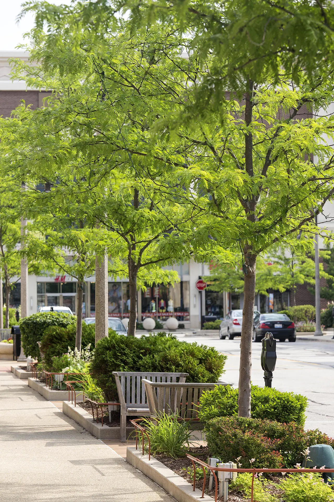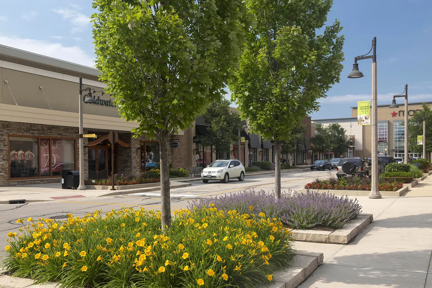 In the Chicago suburb of Bollingbrook is The Promenade, a 750,000 square foot open-air shopping center. With easy access, plus a wide variety of shops, restaurants, community events and workshops, the shopping center is a popular destination for many in the community. Attractive landscape adds to the welcoming ambiance, with oversized planters bursting with colorful blooms, neatly trimmed ornamentals lining pathways, and mature trees providing shade on warm days.