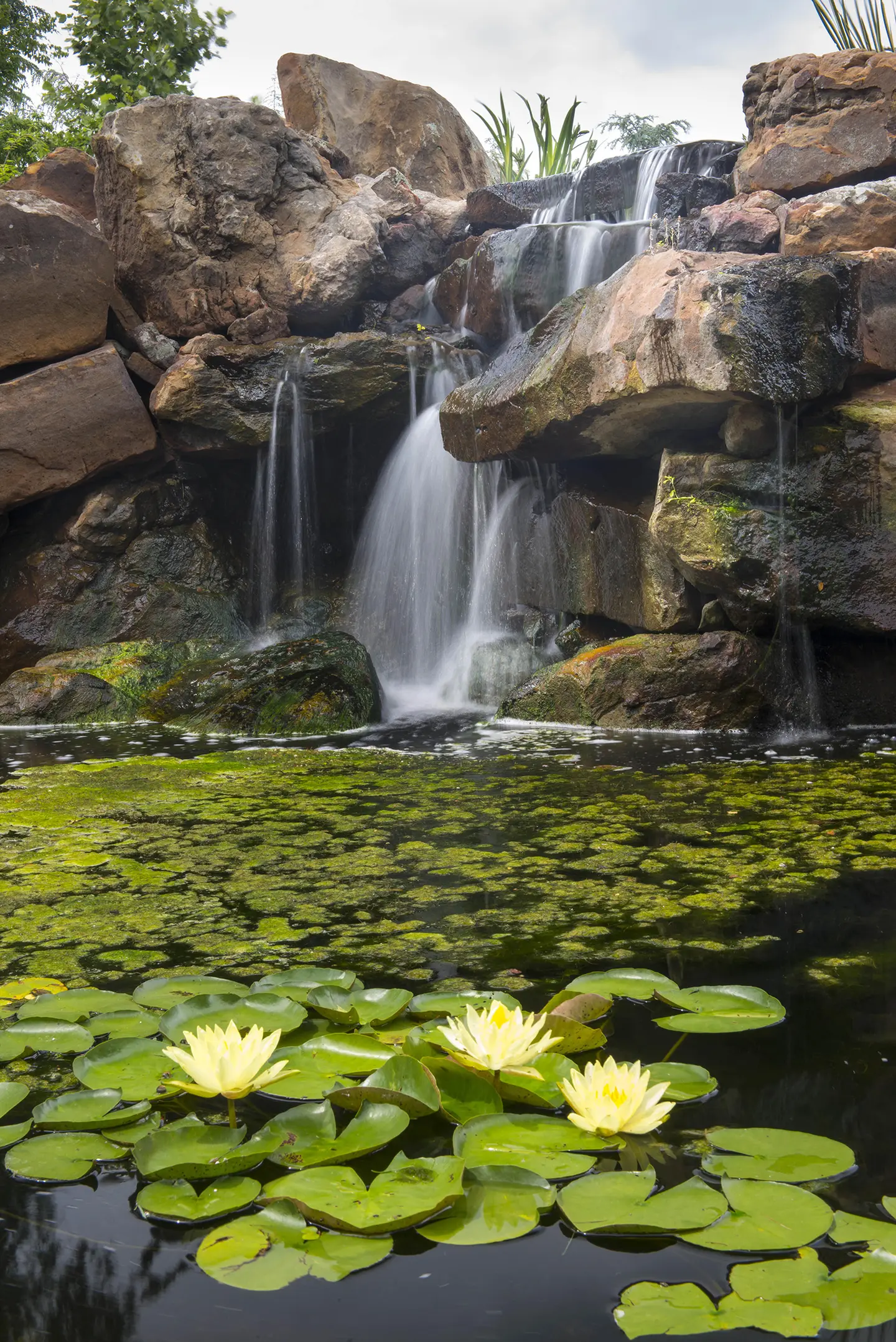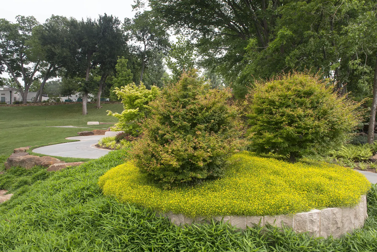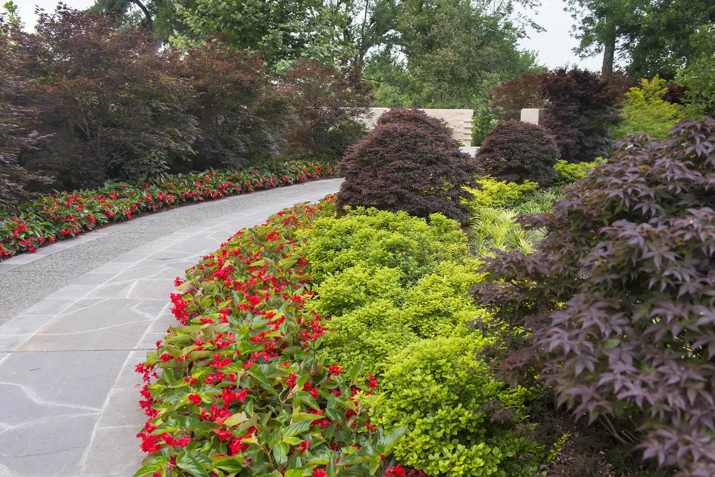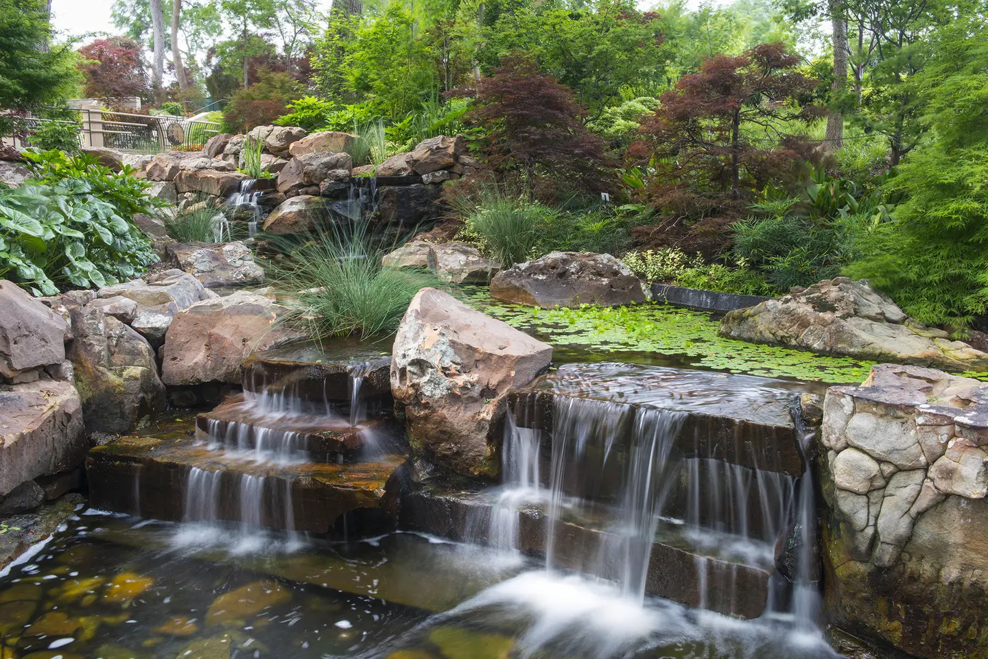 The two acres that are now Red Maple Rill weren’t always impressive. Originally a drainage swale overcome with bamboo, it was transformed into a stunning setting that today showcases more than 80 varieties of Japanese Red Maple. In additional to the Red Maple, visitors enjoy a recirculating creek, numerous waterfalls, stone bridges, and a 100-year old weeping Japanese maple.