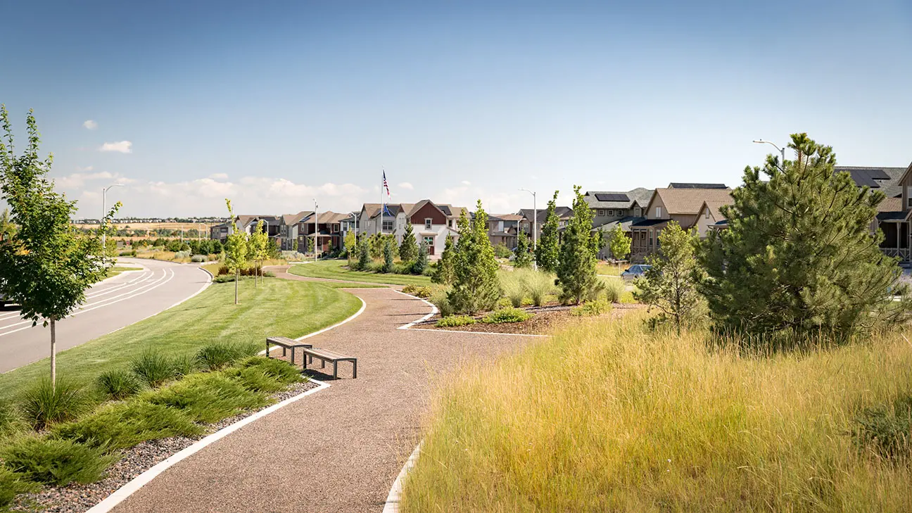 Colorado is known for its spectacular views, and Sterling Ranch doesn’t disappoint. This large, master-planned community is just southwest of Denver, in the suburb of Littleton, Colo. As a sustainability-minded community that values conservation, BrightView provided extensive native seed development which will contribute to Sterling Ranch’s mission of maintaining a balanced ecosystem. BrightView’s scope also included landscape and irrigation installation in several parks, medians, hardscape flatwork in many common areas, shelter construction, monumentation, and community artwork.
