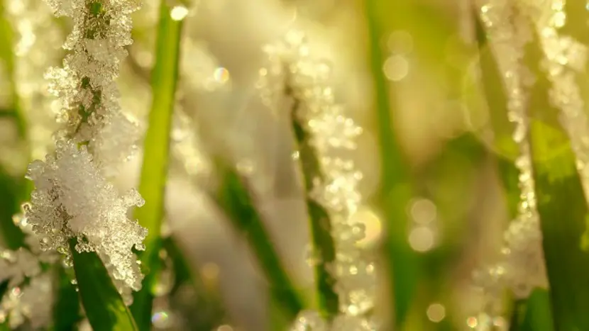 If your lawn is frozen without a snow coating, avoid walking on it. The weight of your feet will damage the grass blades and may leave unsightly, discolored imprints in the lawn. After a freeze, the water molecules within the grass blades expand, impairing their elasticity. When weight is applied to the blade, it breaks instead of bending, causing significant cellular damage. To be safe, stay off the grass until it has had a chance to thaw.