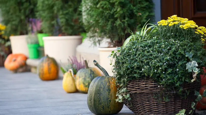 You don’t need to start from scratch in your containers and baskets to give your property a refresh. Some plants, such as red fountain grass and sweet potato vine, will transition effortlessly into the cooler months. Mix in classic fall plants, such as mums or ornamental kale or cabbage, and you’ll have a fresh new look with less expense and waste.