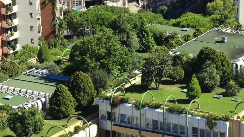 Developed cities have their own climate and it's generally warmer than the less developed surrounding areas. This is called the urban heat island effect. Green roofs help mitigate this effect with its inherent evapo-transpiration capacity. In other words, the natural processes which take place in the roof's plant material offer a cooling effect on the ambient outdoor temperatures. In combination with tree- and plant-filled landscaping, a green roof can greatly help reduce urban island effect, making today's increasingly hotter summers more bearable for all.