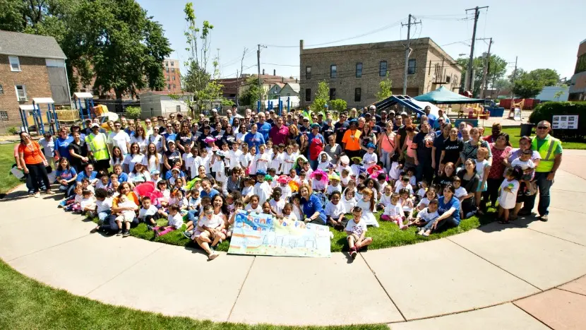 BrightView in Chicago is teaming up with the Chicago Bears, PNC Bank, and Gateway Green to enhance a park and construct a garden for El Valor, a nonprofit that supports and challenges urban families to achieve excellence and participate in community life in Chicago’s South Side. El Valor is the second largest provider of early child education in the city, yet the park at their Ray Gonzales Facility is outdated and surrounded by caution tape.