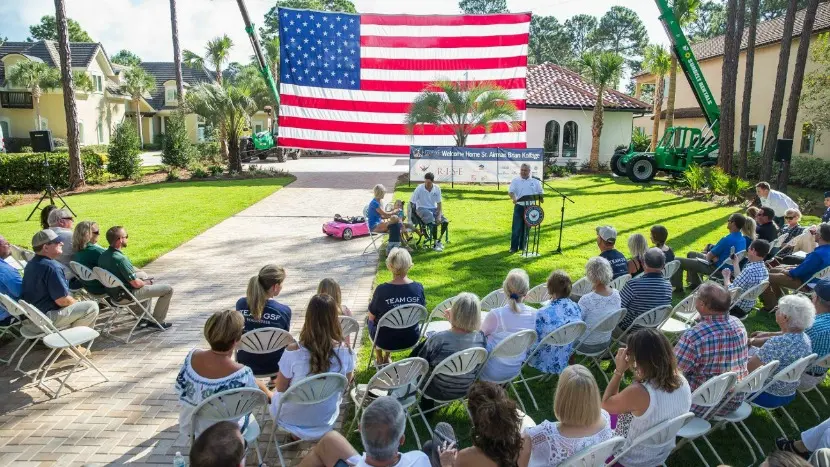 BrightView teams in Sandestin, Fla., joined the Gary Sinise Foundation and other supporters of their R.I.S.E. program Oct. 18 to dedicate a specially adapted custom smart home for U.S. Air Force Senior Airman Brian Kolfage and his family. BrightView Landscape Development in Tampa teamed up with enhancement teams from our Santa Rosa and Emerald Coast branches to install an irrigation system and beautiful low-maintenance landscape for the Kolfage’s new home.