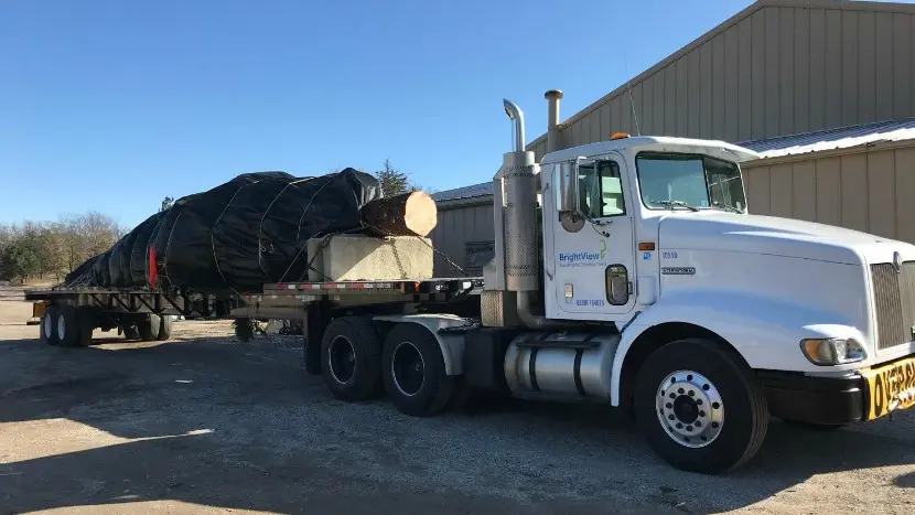 The 46-year-old winning tree came from Elgin, Ill., beating out 41 other candidates. Tipping the scales at 35 tons, this massive evergreen was no easy task to transport. The 55-foot blue spruce tree was cut down by BrightView and loaded onto a flatbed truck with a crane. BrightView then transported the tree south of the city in preparation for its installation in Millennium Park.