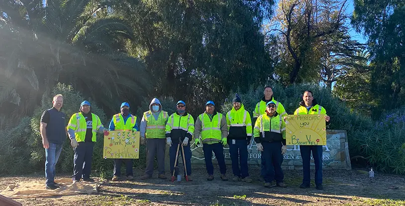 And with that, they got to work, creating a coalition to make their vision a reality. BrightView’s Ventura and Conejo branches reached out to some of their clients to ask if they’d be willing to donate a day of service to enable crews to redirect to Casa Pacifica to tackle an overgrown area between the campus’s main driveway and housing for transitional-aged youth, also known as the TYS program. The scope would require several crews-- including maintenance, enhancement and tree crews-- for 2 full days of work. JLL of Thousand Oaks, City of Westlake Community Park, La Ventana HOA in Ventura, and Westlake Park Place were among the generous clients who agreed to donate a day.