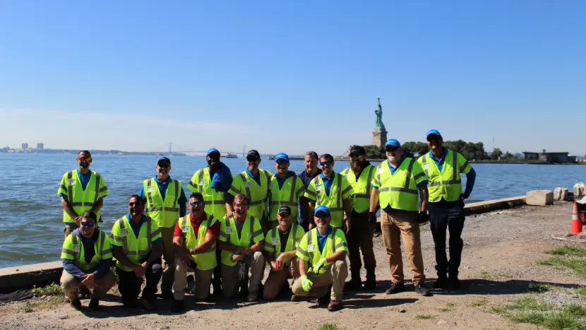 Recently, our BrightView team spent a day at the historic location of Ellis Island in New York Harbor, reclaiming the landscaping surrounding Ellis Island Hospital. Team members donated their time and services to the nonprofit Save Ellis Island, Inc., to help clean up the grounds, clear out overgrowth, and mow the overgrown lawns on the site’s less visited south side.