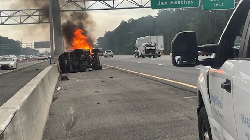Driving to work recently, Clint Matthews, Jacksonville Branch Crew Leader, was ready to embrace a standard workday: mowing, trimming, etc., when he noticed smoke from a car on the side of the road that was just involved in an accident.