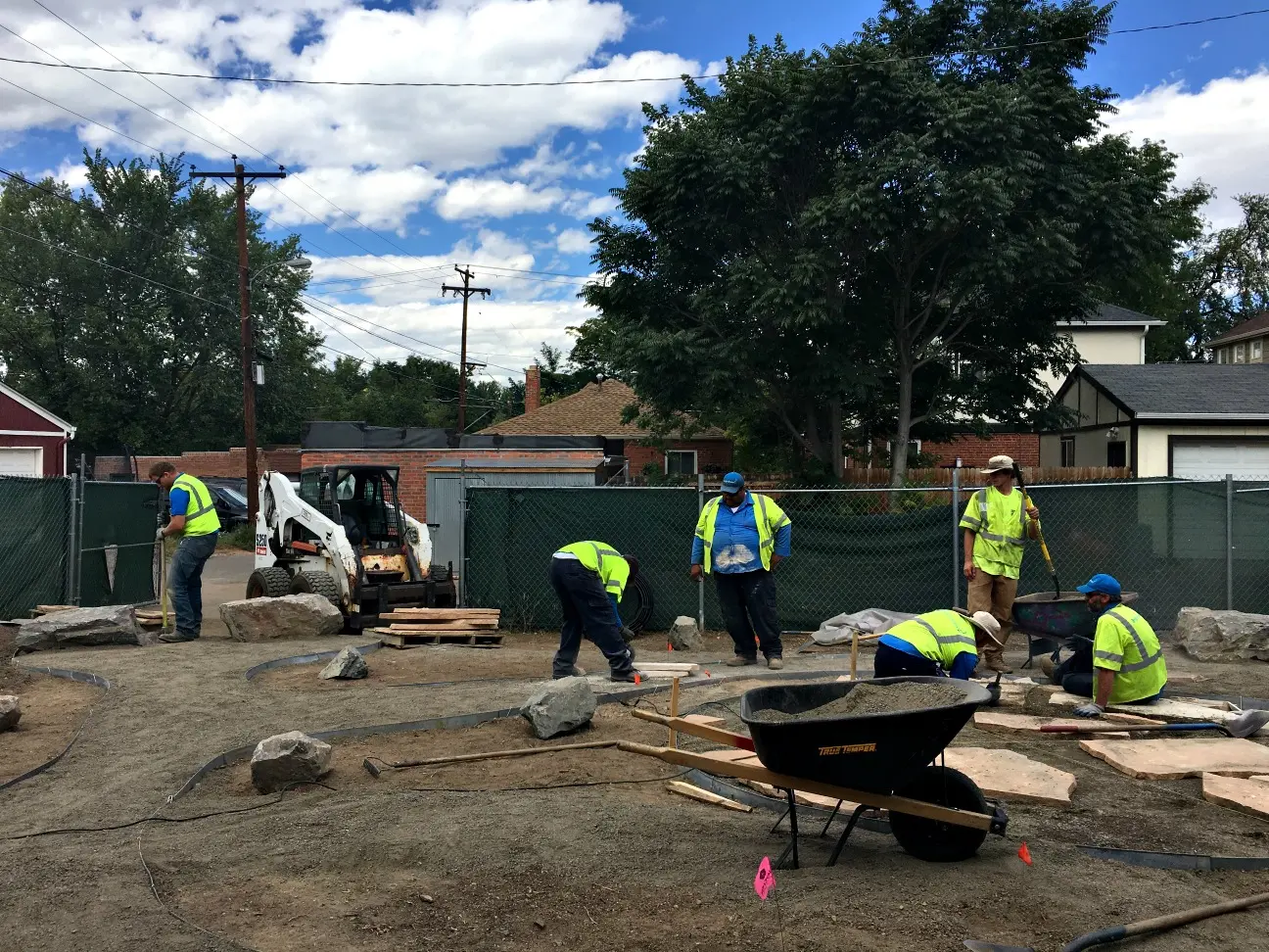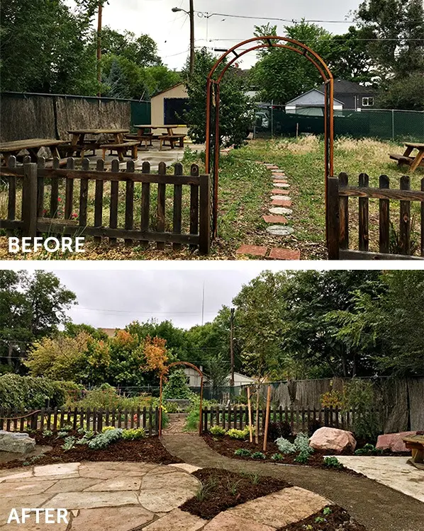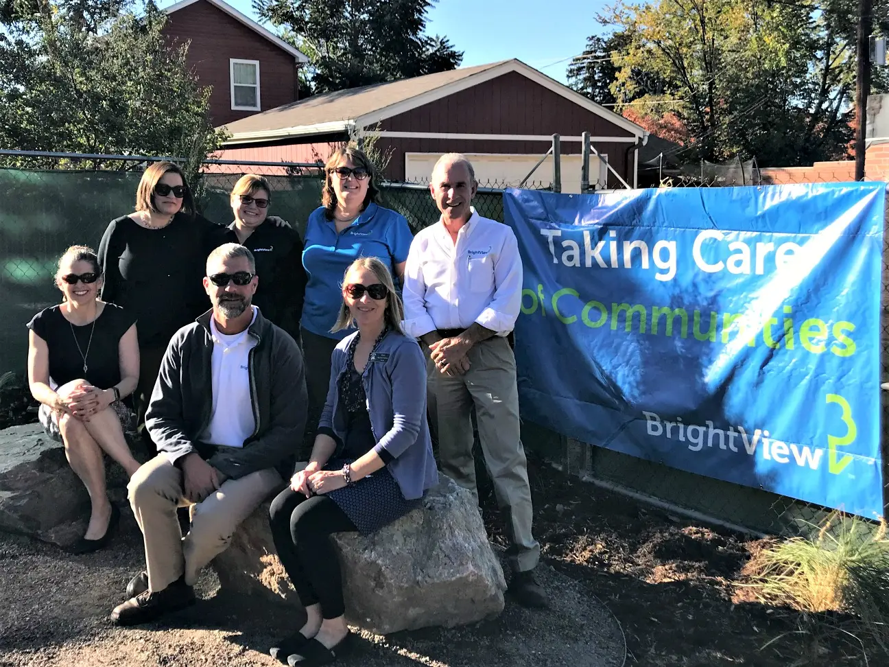 BrightView teams from across Denver worked together to get all materials donated and split the project into three phases with each branch responsible for different steps in the process. BrightView's Denver South team did the demolition and installed boulders, Denver West installed flagstone and pathways, Denver East installed the plants and mulch, and Denver North helped with all three phases.