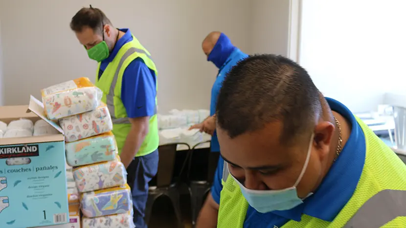BrightView CEO Andrew Masterman joins team members to sort and pack food boxes for distribution in support of Hope Women's Center in Phoenix, Arizona.